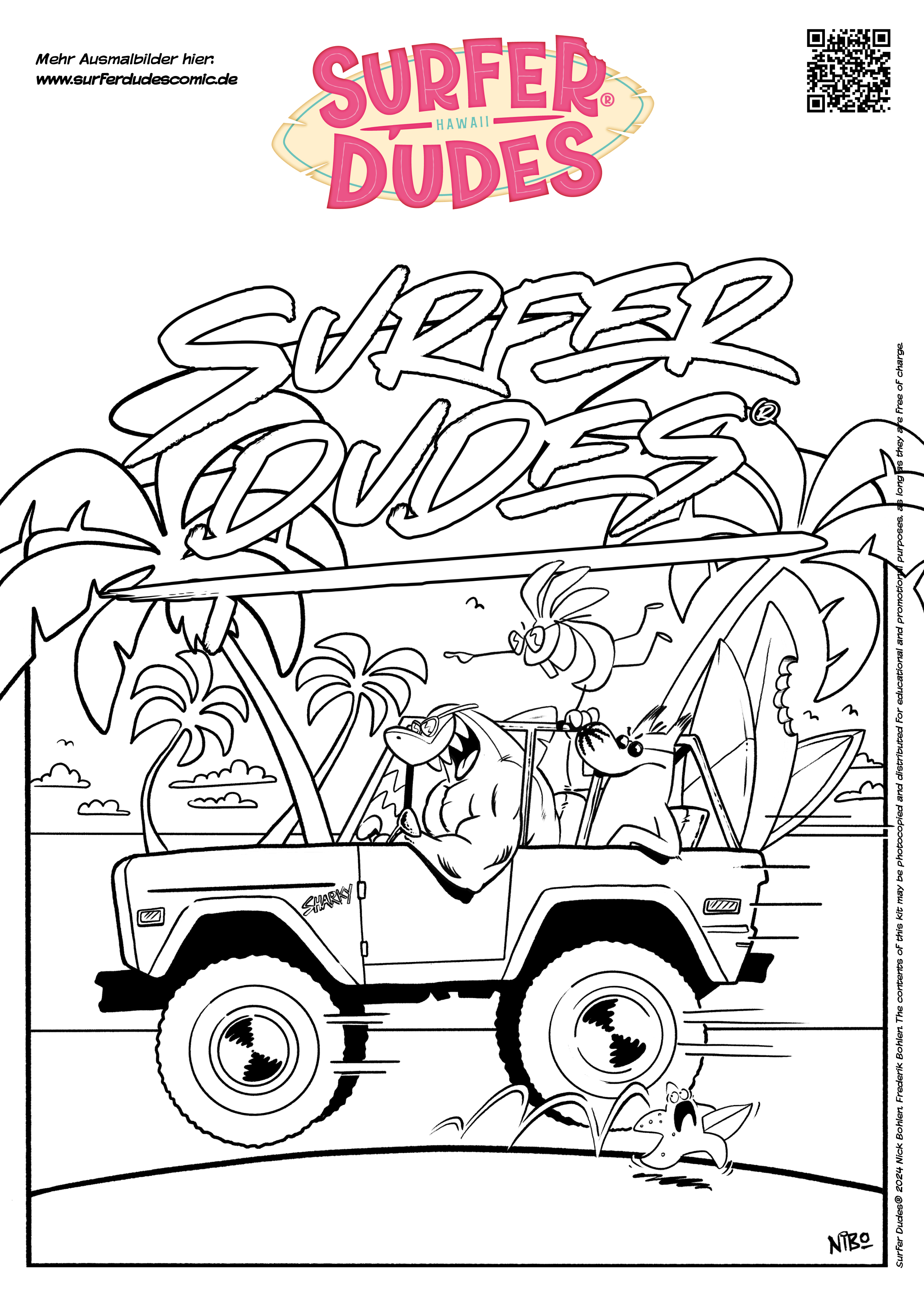 Ob am Strand, im Urlaub oder gemütlich zu Hause – die Surfer Dudes bringen dir Sonne, Surf-Action und jede Menge Lachen auf Papier.